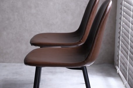 洗練されたデザインと機能性を兼ね備えたダイニングチェア『Jolly(ジョリー)』ダイニングチェア。シェルのように曲面のある座面が身体にフィットし、長時間座っても疲れにくい設計です。また、張地に使われるPVCレザーは本物のレザーのような上質感と、水に強くお手入れのしやすさが特徴です。PVCレザーとブラックアイアンの脚部という異素材の組み合わせが目を惹き、全体をすっきりとした印象に。存在感がありながらもシンプルなデザインのため、生活のさまざまなシーンで活躍します。